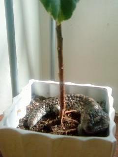 室内においてある植木の鉢に登って眠るのが好きなZzzz。